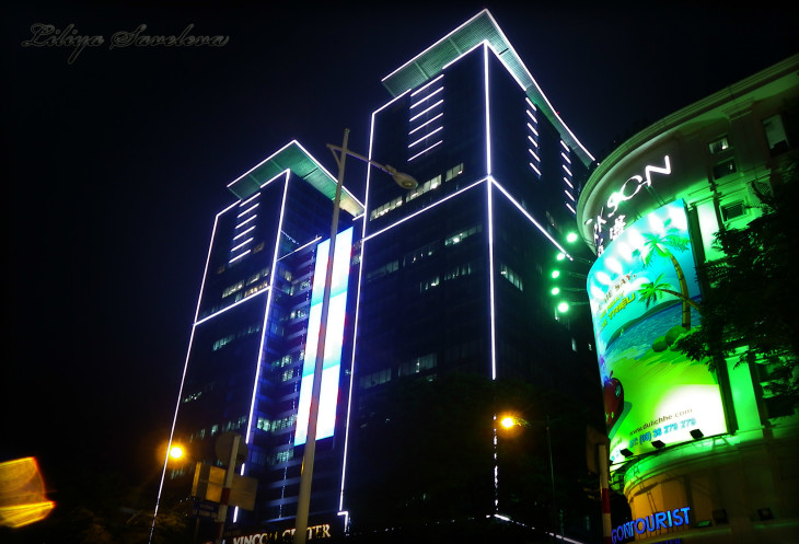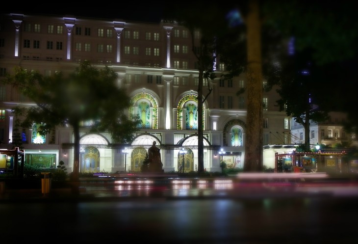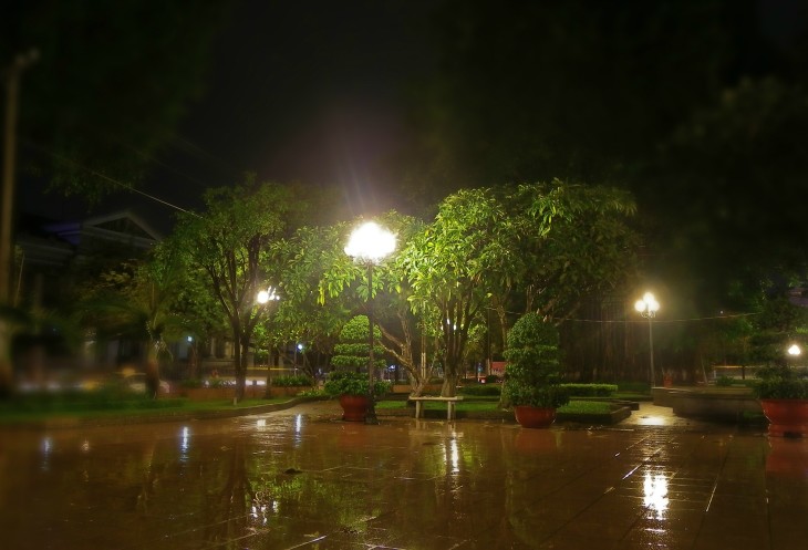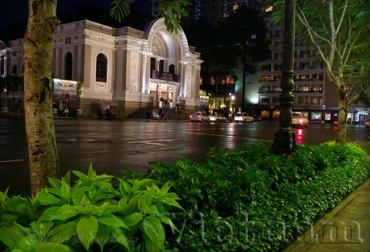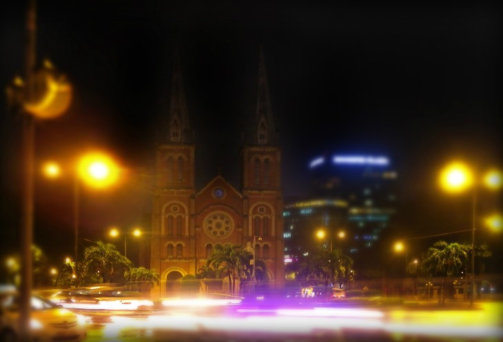 Мы сделали круг по центру. Дошли до Нотер-дам де Сайгон, который немного разочаровал, потому что здание не было подсвечено и его шпили уходили в темноту.