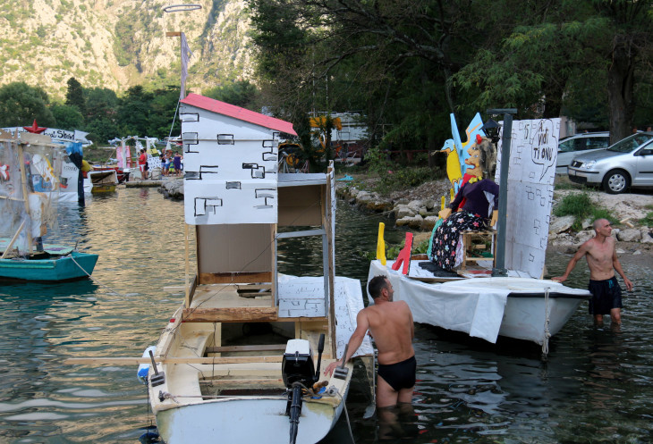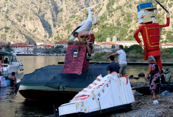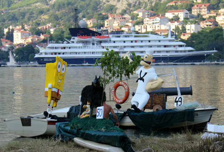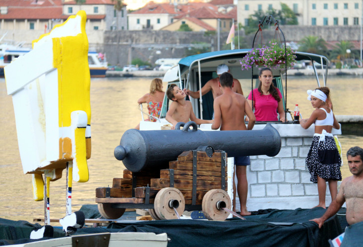 Но вот какого праздника? Готовясь к поездке в Черногорию, много было прочитано и изучено, но вот о празднике в августе в Которе - информации не попалось...Пришлось идти спрашивать у трудяг, весело воплощавших свои мечты в жизнь, "а что это вы тут делаете, а?" Как ни странно, мы были единственными любопытствующими, хотя в августе в Черногории - наплыв туристов. Нравятся мне черногорцы - хоть и заняты были как пчелки, но наши вопросы не проигнорировали. Стали отвечать на смеси черногорского-сербского-русского-английского-украинского, потому что понятно ж было, чего эти недотепы-туристы (мы себя абсолютно таковыми ощущали в отсутствии понимания происходящего) знать желают. Черногорцам было приятно, что мы их терзаем вопросами - это видно было по их лицам и по тому, как они, перебивая друг друга, пытались донести до нас суть происходящего. Как хорошо, подумалось мне тогда, что мой муж говорит по-украински, мой английский остался беспомощным...Черногорцы рассказали, что фестиваль "Бокельская ночь" (понять название было легко, потому что произносится так же примерно, как и по-русски)- для них невероятно ожидаемый ежегодный праздник, который проводится в августе (даты проведения меняются), семейный и исторический праздник, целыми семьями они фантазируют над своими лодками, готовя проекты и материалы не спонтанно, а гораздо заранее. Одна семья нам на пальцах объяснила, что участвуют уже восьмой раз...