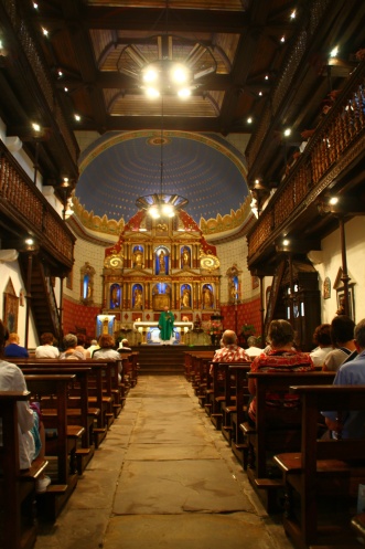 Интерьер церкви образуется из одного нефа и имеет деревянные галереи, протянувшейся вдоль боковых и задних стен здания. Эти галереи первоначально предназначались для мужчин, посещающих мессы, в то время как женщины сидели на скамьях первом этаже, вот такая дискриминация.
