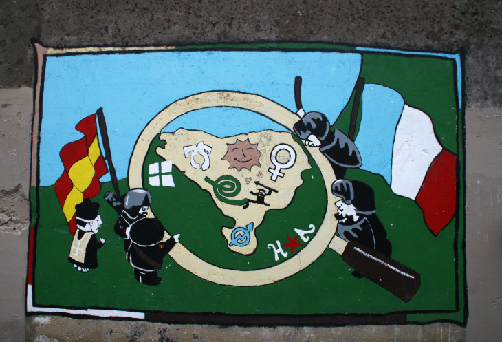Баски вообще весьма горячи, и любят за что-то бороться. Мне, например, приглянулся плакат, который как бы говорит – Страна Басков не испанская и не французская, нам все равно до ваших распрей, правительства и церкви – мы Баски. Может она и не об этом говорит, но мне так привиделось.