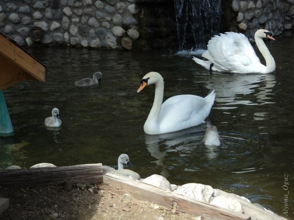 В продолжение птичьей темы — счастливое семейство белых лебедей:) В марте, когда мы были в зоопарке первый раз, мы видели лишь одного лебедя, в то время как вторая птица сидела на кладке яиц. Ну, а в июне мы уже наблюдали такую милейшую картину — папа, мама и четверо птенцов:)