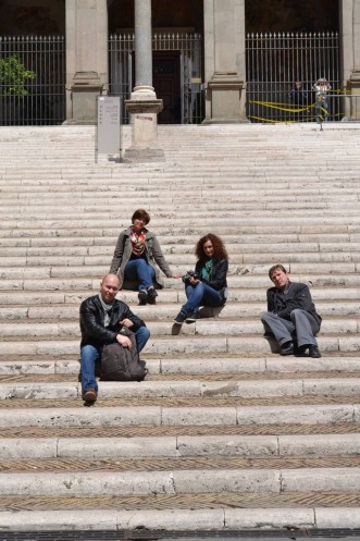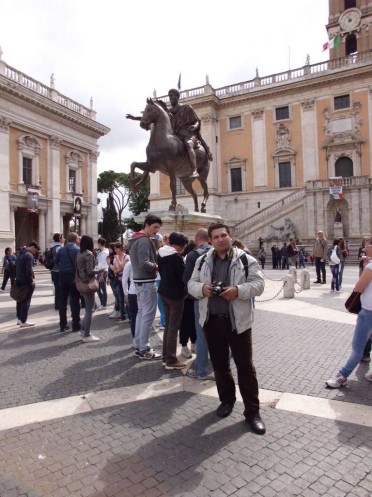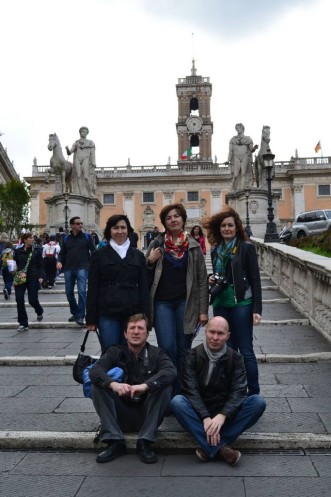 Вдоволь насладившись видом с вершины лестницы, мы отправились гулять по Капитолийской площади. К ней, опять же, приложил руку Микеланджело. Вообще, в Риме мы столкнулись с тем, что там буквально, куда ни плюнь - наткнешься или на Микеланджело, или на Рафаэля, или еще на кого-нибудь. Причем, в самых неожиданных местах. Заходя в небольшую невзрачную на вид церквушку, вы никогда не можете быть уверены, что стены ее не расписывал кто-то из великих мастеров. С нами так было не раз и не два.