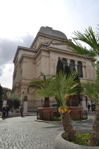 Здание это было построено в 1904 году на месте бывшего еврейского гетто. Гетто на этом месте возникло еще в 1555 году согласно булле, изданной папой Павлом IV. Тогда же были введены отличительные знаки для обязательного ношения на одежде, принудительные работы и появился запрет на свободное передвижение. А впервые изолированное иудейское поселение возникло в Венеции на островке Джудекка, где были плавильные печи – джетто. Постепенно слово «джетто» превратилось в гетто. И лишь когда в 1870 г. Рим заняли войска Итальянского королевства, папы лишились светской власти, а королевский декрет упразднил все ограничения по религиозному признаку. Римские евреи стали равноправными гражданами Италии.