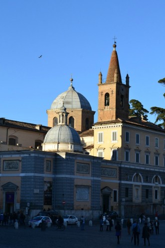 Уходили мы с площади через Северные Ворота Фламиния. Справа перед воротами стоит небольшая скромная церковь Санта Мария дель Пополо.
