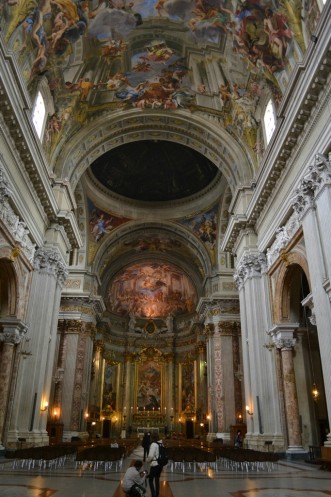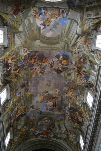 Все дело в том, что церковь Святого Игнатия расположена среди домов на довольно тесном участке. Если бы купол у нее был настоящим, то он бы заслонял свет жителям стоящих поблизости домов. Именно по-этому возникла идея создать вместо настоящего купола нарисованный. С этой задачей блистательно справился художник и математик Андреа Поццо, а его шедевр по праву вошел во все учебники архитектуры.