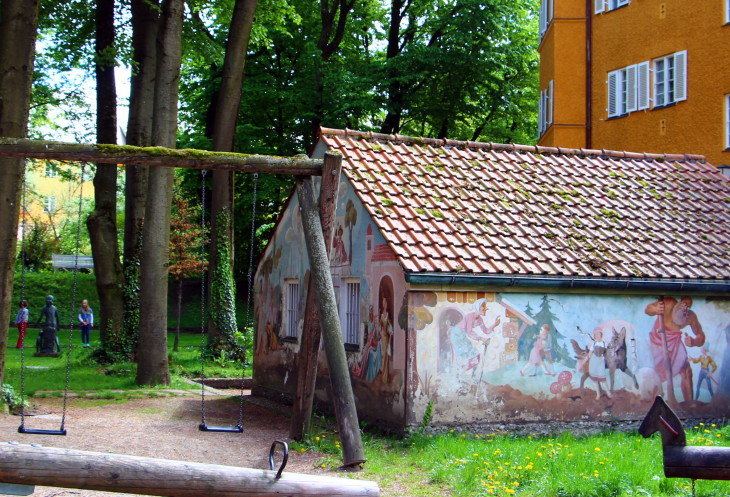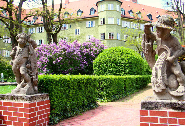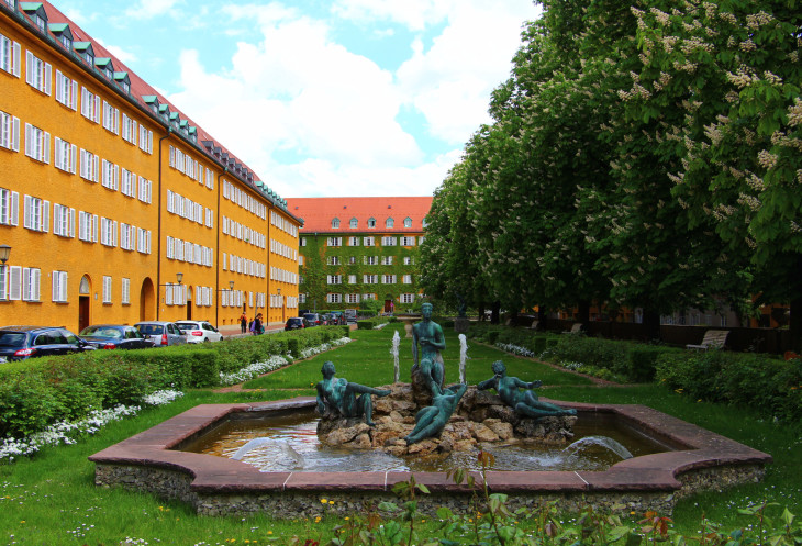 Как-то, находясь в Мюнхене, мы ехали на трамвае к метро и увидели рядом с остановкой комплекс жилых домов, очень похожих руг на друга. С виду они напомнили нам квартал Фуггерай в Аугсбурге. "Как-нибудь нужно прогуляться сюда и посмотреть, что это за место"- решили мы. Решить решили, но попали сюда спустя почти год, хотя то место находится всего в одной остановке от дома, где живут мои дети. Сначала сходили они без меня, рассказывая потом мне о том, как им понравилось, и что я обязательно должна туда попасть.