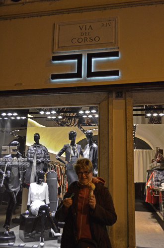 Обратно ехали на метро.Зашли в супермаркет и в отель. Отдохнув часок, решили прогуляться по via dell Corco до площади Пополо.Уже стемнело и опять заморосило,но на улице народу было достаточно.Идя по главной торговой улице,невольно заглядываем в витрины магазинов.Покупателей в них очень мало,а в некоторых вообще только продавец сидит. Шоппинг я не люблю,но в пару магазинчиков зашла из любопытства,посмотреть на цены. Посмотрела,не понравились...