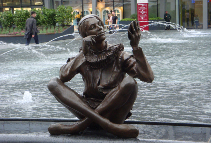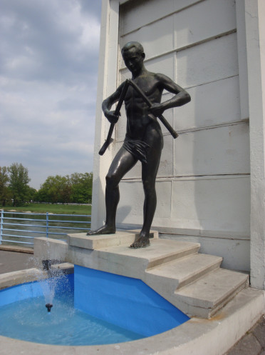 На другом конце моста стоит символ курорта — вылечившийся больной, ломающий костыль. Точнее, символом является ломающий свой костыль сидящий больной, а на мосту стоящий.