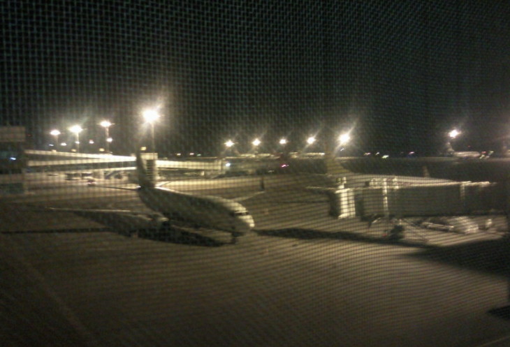 Из окна зала ожидания были видны проезжающие прямо у здания самолеты, видимо, по причине ремонта полос аэропорта. Раньше они в этом месте не ездили.