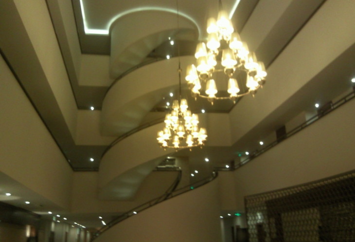 Двери открылись и мы увидели холл. Он был огромный по причине того, что здесь не было перекрытий по этажам и не было коридоров. То есть, стоя в холле, просматривались все этажи до последнего, а по бокам были номера. Посредине находились красивые спиральные лестницы и четыре лифта. Такого дизайна здания я никогда еще не видел, и он мне понравился!