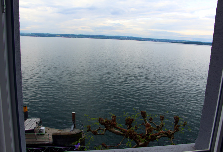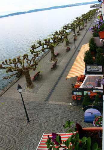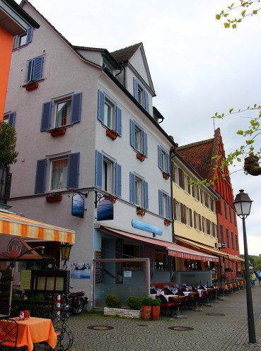 Сначала мне пришлось перенести поездку на один день позже- с четверга на пятницу. Из-за этого возникли небольшие проблемы с гостиницей. Немцы очень любят в выходной путешествовать- из-за этого найти гостиницу в популярном месте за день до отъезда очень затруднительно, да и цены уже другие. Но мне повезло, я нашла очень милую гостиницу в замечательном городке Меерсбург за сравнительно небольшую( 70 евро с завтраком) цену, да еще прямо на набережной. Забегу вперед и скажу, что мне еще и с номером повезло- он был на 3-м этаже, а окна выходили на озеро- вид просто потрясающий! Гостиница сама тоже очень милая: порадовало белоснежнейшее белье, отзывчивость персонала и расположение(прямо рядом с причалом).