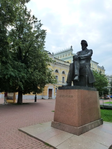 Справа от театра установлен памятник Николаю Александровичу Добролюбову.
