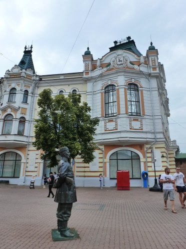 Забегая вперед, раскрою небольшой секрет – «Городовой» здесь не один, с десяток скульптур, большая часть из которых изображает типичных горожан позапрошлого века, составляет ему компанию. Оригинальные фигурки стали появляться на Покровке с 2005 года. Они органично дополнили образ старинной улочки и полюбились всем сюда приходящим. Эти скульптуры с веселым характером непременно мелькают среди нижегородских достопримечательностей в путеводителях и интернет-ресурсах. Так что увидеть их считается обязательным при посещении Нижнего Новгорода, а фотографирование в их компании превратилось в увлекательное занятие для туристов, да и для самих нижегородцев.