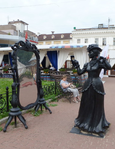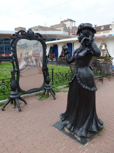 Напротив, в сквере, разбитом на месте усадьбы князей Трубецких, недовольно поджав губы, поглядывает на бывшую «свою» улицу позеленевший от времени и не очень любимый нижегородцами пламенный революционер Свердлов.