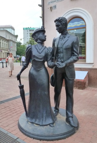 Большое спасибо Ирине за дополнение: "Скульптура посвящена декабристу Анненкову и его жене, француженке Полине Гёбль. После 30-летней сибирской ссылки Анненкову не разрешили поселиться в Петербурге или Москве и он выбрал Нижний Новгород. В 1861 г. он даже был избран нижегородским уездным предводителем дворянства и принял активное участие в подготовке и проведении Крестьянской реформы. Он очень гордился, что ему довелось исполнить главную задачу, которую когда-то определили для себя декабристы. Это единственный памятник уникальной паре, истории любви которой посвящены роман великого А. Дюма ("Учитель фехтования") и СОВЕТСКИЙ художественный фильм ("Звезда пленительного счастья")".