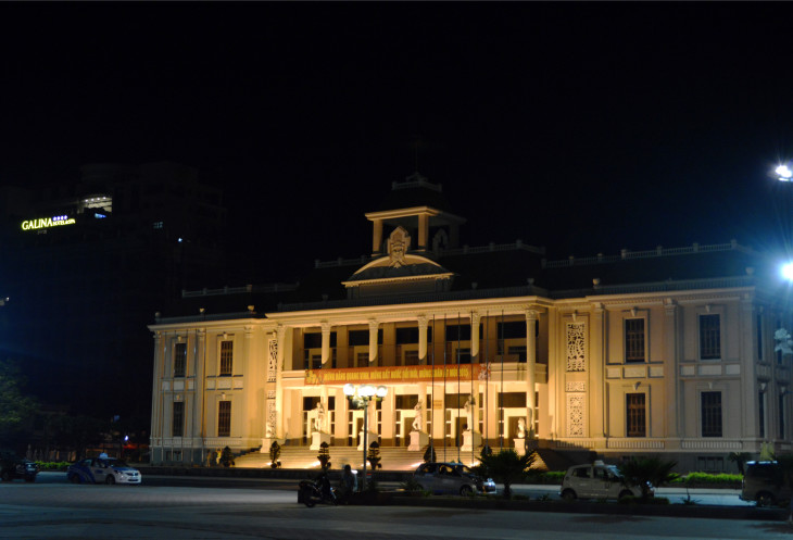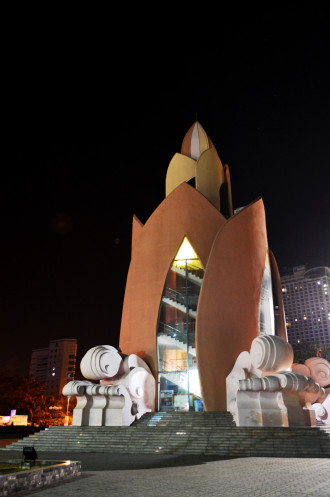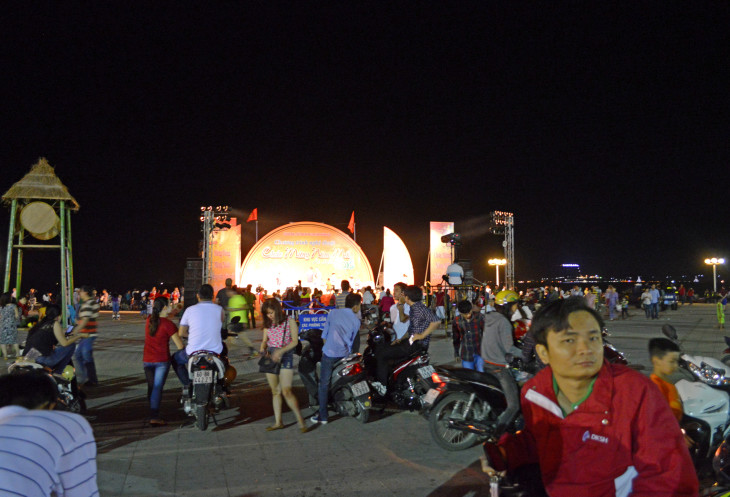 В новогоднюю ночь здесь был ,наверно,весь Вьетнам и еще куча туристов.Часов с девяти вечера народ на набережную все прибывал и прибывал.Дороги перекрыли,люди оставляли свои байки во всех дворах.На площади напротив театра,шел концерт,вдоль набережной выставка фотографий.Люди в основном едят и пьют,сидя,где придется.