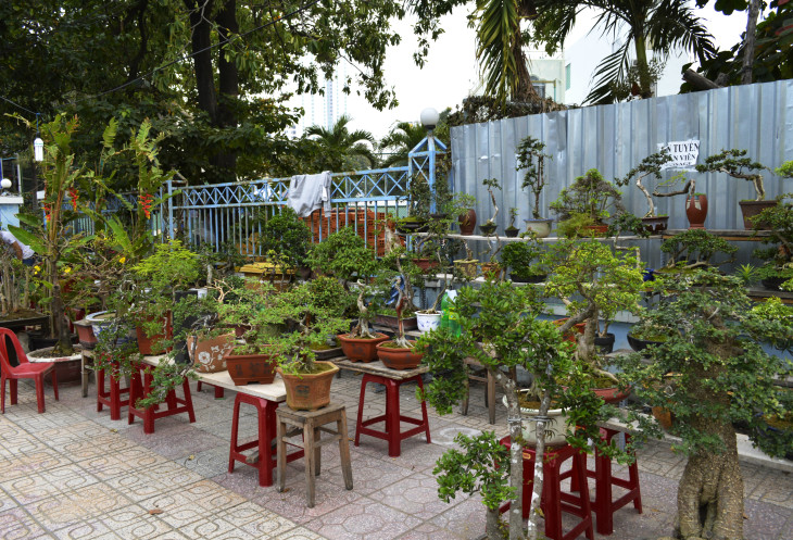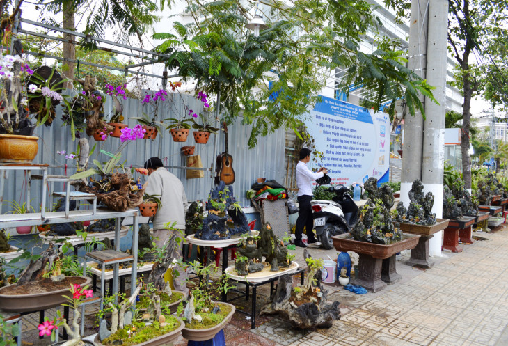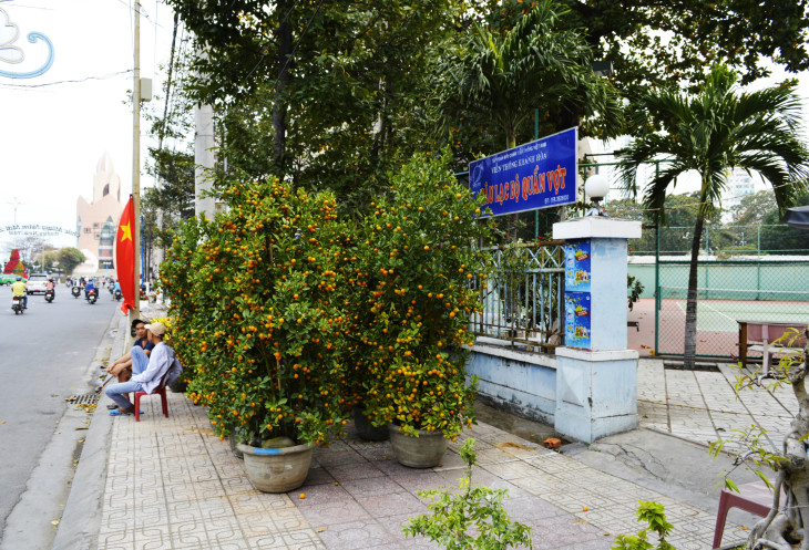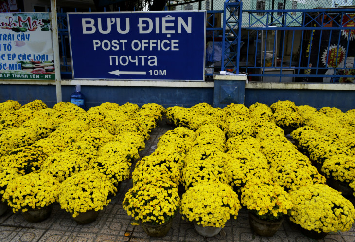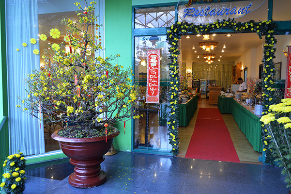 Выйдя на улицу,мы были поражены обилию цветов.По восточному календарю Новый год,это встреча Весны и поэтому встречают ее яркими цветами,красными фонариками и флажками с пожеланиями здоровья и успеха.По всему крыльцу отеля стояли горшочки с цветами,у входа огромный горшок с деревцем,украшенным флажками (потом это деревце зацвело красивыми желтыми цветами).А какой запах! Ммм,не передать словами!