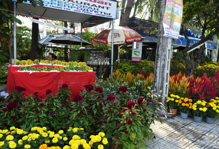 Но все это мы рассмотрели потом,а сначала перекусив,упали спать.Проснувшись ближе к вечеру,отправились на разведку по окрестностям. Надо сказать ,что бронировали тур мы на 19 февраля,но наш "любимый" Пегас перенес нам не только аэропорт вылета,но и дату сместил на целую неделю,на 13 е число,причем известили об этом меньше,чем за месяц .(Хорошо,что был очередной отпуск и мы могли себе это позволить).Таким образом мы попали в Нячанг за неделю до Нового года по восточному календарю,и могли наблюдать как местное население готовится к празднику,празднует и собственно отходит от праздника))).