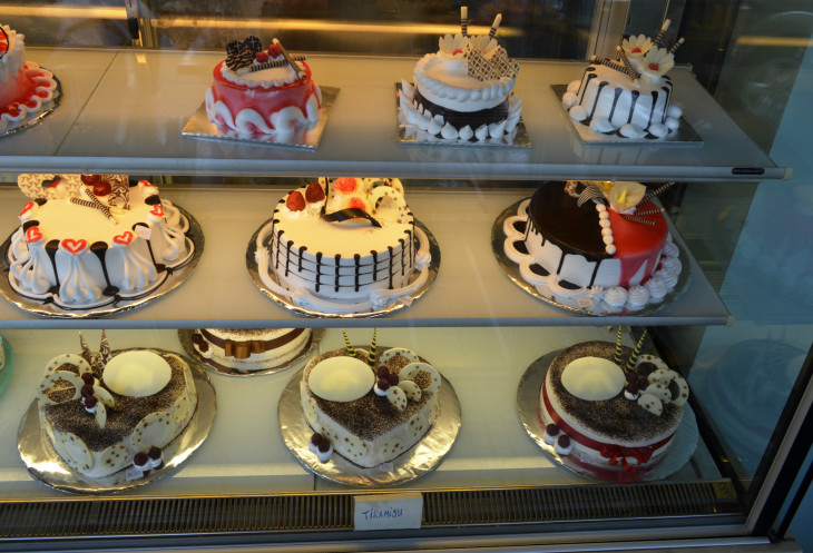 выходим к лавке со свадебными тортами,там есть даже тирамису,пробовать не стали.