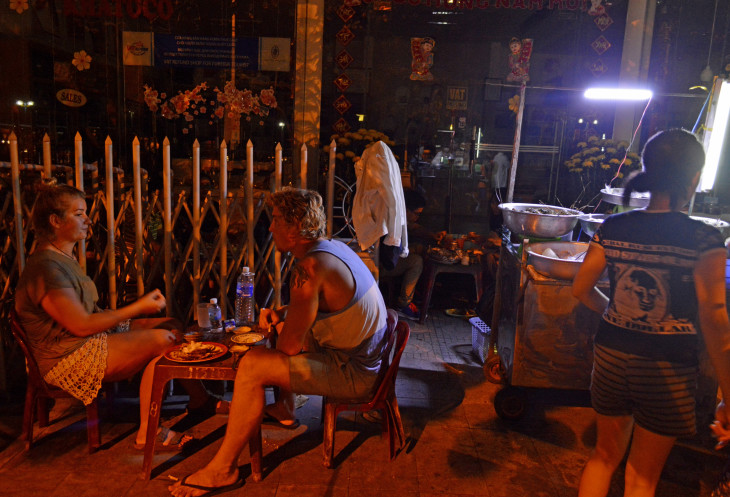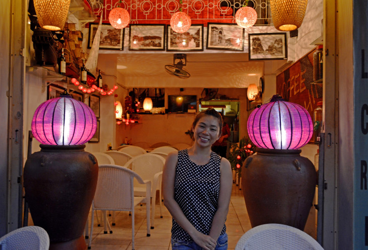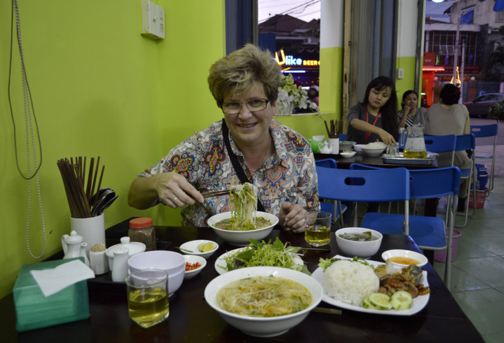 На свое счастье,недалеко от отеля мы нашли неплохое кафе,во вьетнамском квартале, туда по моему ходили все из близ лежащих отелей и хостелов,в основном иностранцы.Цены демократичные и готовят вкусно.С дочкой хозяйки познакомились и она всегда нас приветливо встречала.Один раз даже с ней по фоткались).
