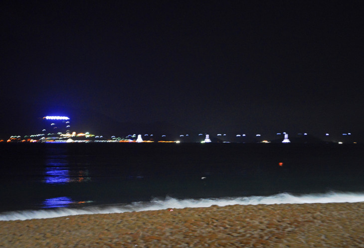 Кое как мы протиснулись к парапету и стали ждать.Вьетнамцы вокруг нас все дружно жевали чипсы,орешки,еще что то в пакетах,запивали пивом , коктейлями и колой.На пляже яблоку некуда было упасть! Кругом новогодняя трапеза!
