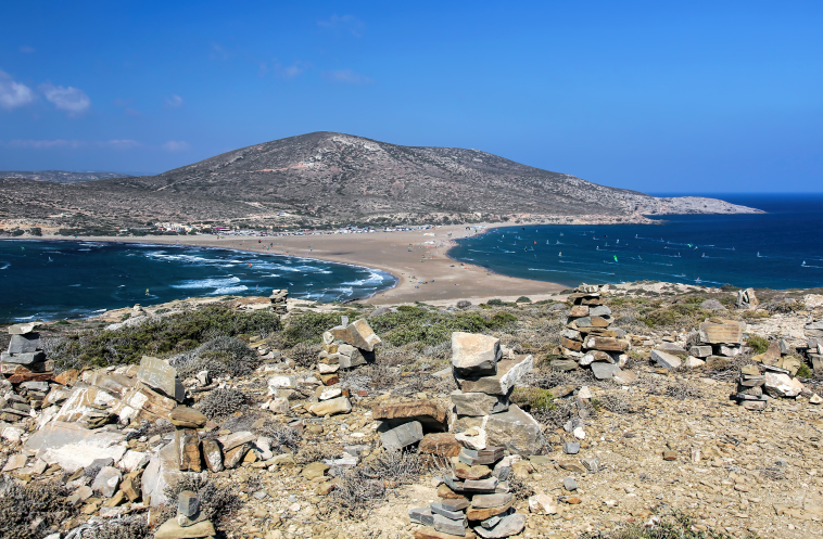 Пляж Цамбика – расположен на восточном побережье острова у подножия одноименной горы, неподалеку от деревни Архангелос и монастыря Цамбика. Большой песчаный пляж, оборудован всем необходимым для отдыха и очень популярен у туристов.