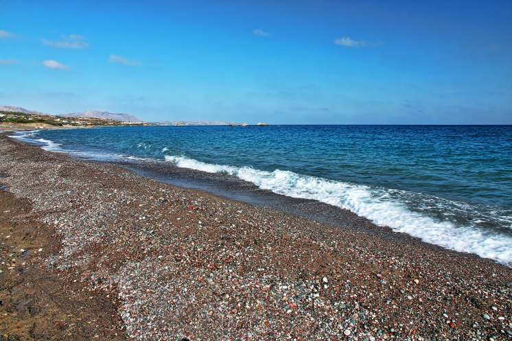 Пляж песчано-галечный, кое-где встречаются каменные плиты; небольшие волны, легкий ветерок и чистейшая вода. Прекрасный пляж, на мой взгляд – лучший из “диких” на Родосе. Любителям уединения рекомендую. Только следует иметь в виду, что тени там нет (если только вы не решите залезть под невысокие деревца-кусты, растущие по краю пляжа), и пресную воду с собой нужно не забыть, не только чтобы пить, но и чтобы умыться после моря. Или придется ехать за ней в Геннади…