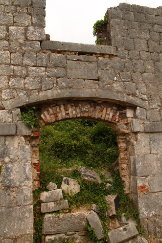 На древнюю "лестницу Каттаро", кстати, можно выйти и с лестницы, по которой мы поднимались к крепости Святого Ивана. Даю ориентир: когда поднимитесь чуть выше смотровой площадки - будете проходить через подобие ворот с железными створками и после них дорога/лестница сворачивает направо. Справа, со стороны моря, будет вот такая стена, а напротив нее - полузаваленный камнями проход куда-то.... Вот эта каменная калитка - и есть выход на тропу к древней лестнице Каттаро и далее через перевал к Ловчену. Только я об этом узнала уже когда вернулась в Москву)) Моя привычка фотографировать на всякий случай всё подряд позволила мне идентифицировать это место, сравнив с фотографией, которую увидела на другом сайте....