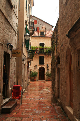 Каждый раз я брожу по Старому Котору, как будто попала в него впервые. Зачатки топографического кретинизма, запрятанные в глубине сознания, проявляются здесь в полной мере... За все свои приезды сюда запомнила я одну-единственную дорогу - от Морских ворот к церкви Святого Трифона. По той, по которой шла в первый свой приезд по Котору вместе с экскурсоводом. Наверное, потому, что адски боялась заблудиться, очень старалась ее запомнить - экскурсовод предупредил, что у церкви он нас бросит, дальше мы целый час будем гулять сами. И в остальных частях города на меня полагаться не стоит - уж заведу так заведу... Поэтому по пути от площади Оружия к Речным воротам, вблизи которых находится вход на крепостную стену Котора, мы поблудили благодаря мне изрядно... На реплику "дорогая, но ты же здесь была уже несколько раз!" мне оставалось только сказать "эм..." и развести руками...))) Ну ладно, все равно гуляем....