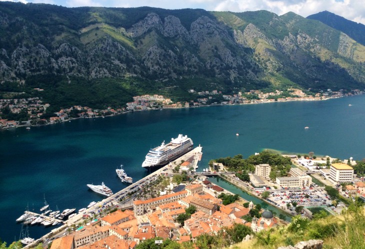 Первый раз мы с дочкой оказались в Которе в 2011 году - он был конечной точкой нашей экскурсии по Бока-Которской бухте. Экскурсия была на кораблике, меня укачало так, что просто атас... И Котор как достопримечательность я не восприняла вообще - долго потом удивлялась, ЧТО в нем находят туристы, пишущие многочисленные восторженные отзывы... В тот первый наш визит в Котор, подплывая к нему на кораблике, я только изумилась - как же высоко уходит в гору крепостная стена!! Ведь построили же такое!