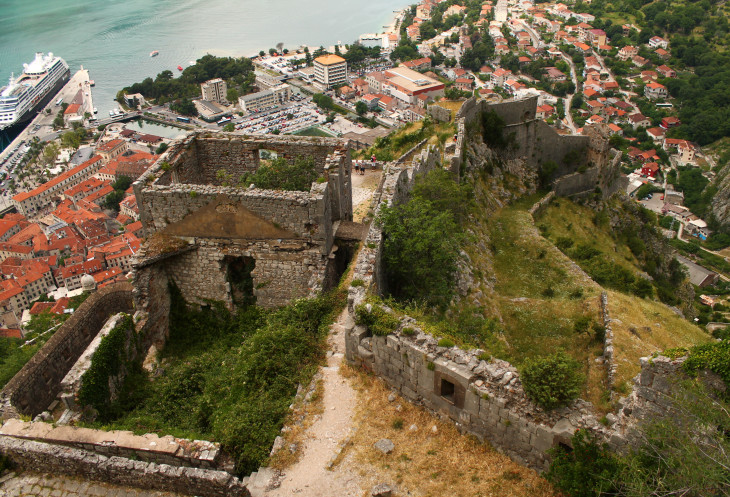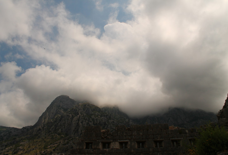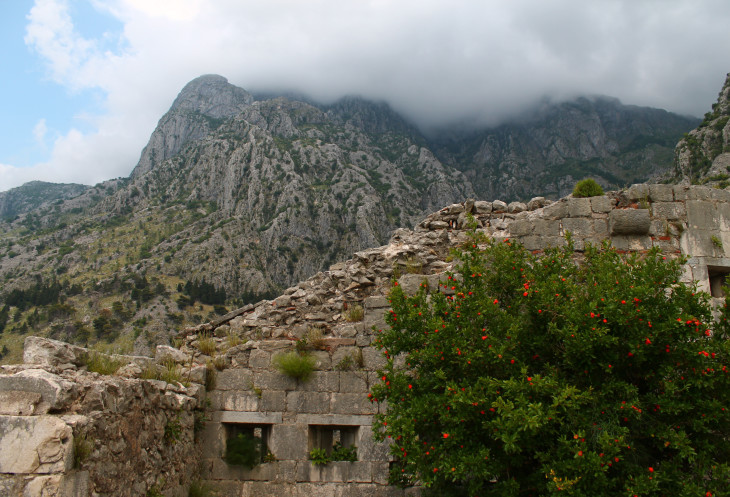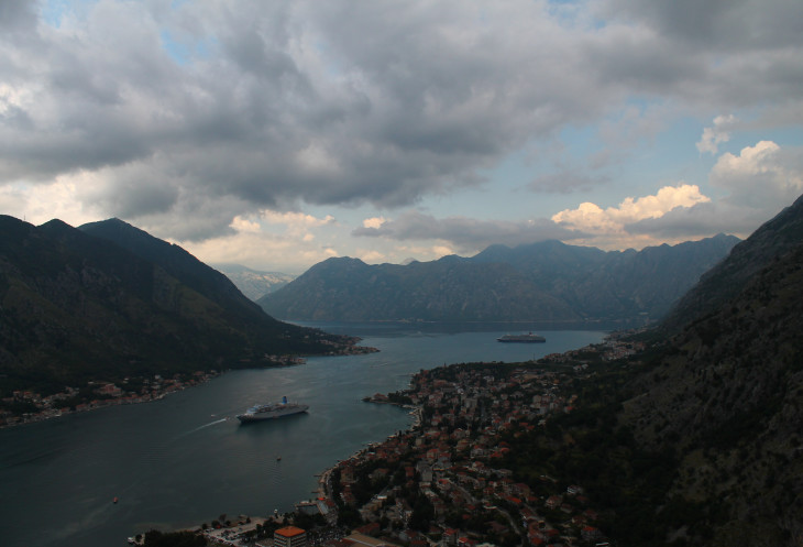 Дождик быстро утих до легкой мороси, гроза тоже, но картина окрестностей Котора, открывшаяся с крепости Святого Ивана, была мрачна настолько, что у меня появилось ощущение, что мы по какому-то временному туннелю, пока поднимались, перенеслись из лета в глубокую осень...