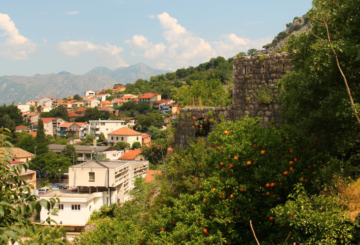 Несколько неожиданно в начале подъема открылся нам апельсиновый садик у крепостной стены