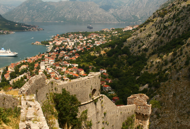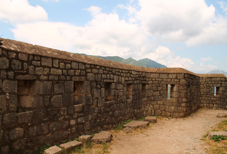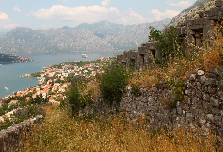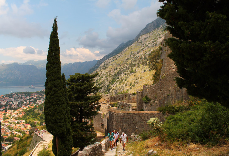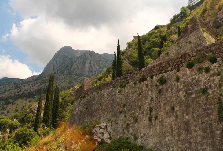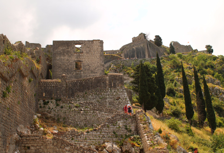 Здесь усталость окончательно отступила – выброс в кровь эндорфинов был просто запредельный, меня захлестнуло чувство уже почти забытого детского восторга… На Ловчене и крепости Жабляк Црноевича было просто любование видами, а здесь, видимо, ощущения от долгого ожидания «исполнения мечты» наложились на красивущие картинки окружающей действительности…. В общем, меня потянуло на подвиги – забраться со смотровой площадки ещё повыше, на саму стену… Тем более что муж, который уже был там (любитель попозировать для фото, забравшись повыше), глянув за стену, изрёк: «ух ты! А здесь так интересно!»