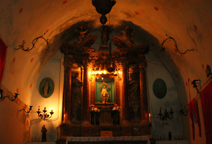 Я столько читала в путеводителях, что церковь была закрыта.... Но нет - церковь работает, можно войти внутрь. Все слегка перекошено - сказывается время и, видимо, последствия нескольких крупных землетрясений (как она вообще устояла-то здесь, на склоне горы!) На крылечке церкви у входа под ногами - вот такая плита.