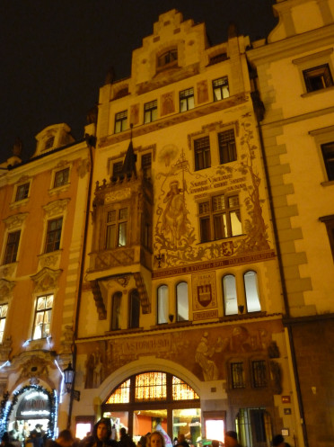 Еще один дом на Староместской площади очень выделяется своим ярким расписным фасадом – «Дом Шторха».