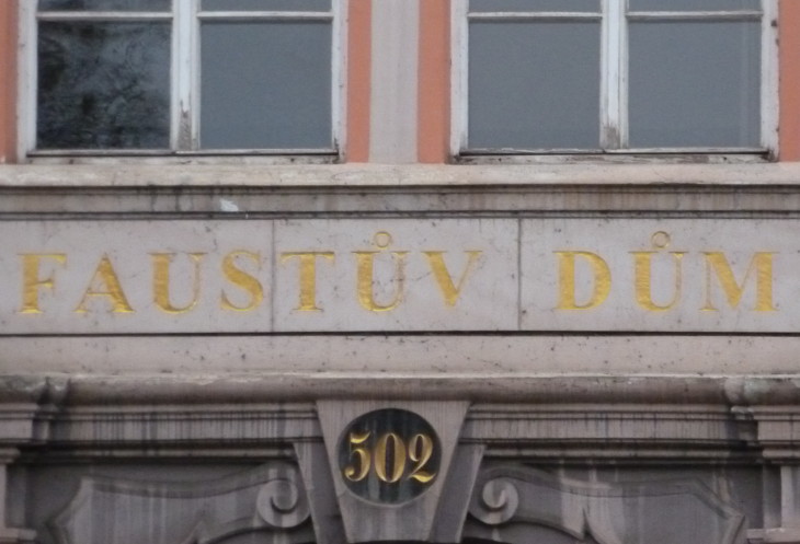 Пражские легенды гласят, что доктор, заключивший контракт с самим сатаной, приехал в Прагу в 1591 году (хотя годы жизни реально существовавшего доктора Иоганна Фауста 1480-1540) и поселился в каменном трехэтажном доме на углу тогдашнего Скотного рынка. На улице таинственный ученый появлялся редко, а в окнах его дома не горел свет. Фауст занимался изучением астрологии, пытаясь разгадать тайны движения планет. Однажды он почувствовал, что знает, в чем заключается гармония мироздания, и в восхищении воскликнул: «Остановись, мгновенье, ты прекрасно!» В тот же момент в потолке образовалась дыра, и ворвавшийся вихрь унес несчастного в ад.