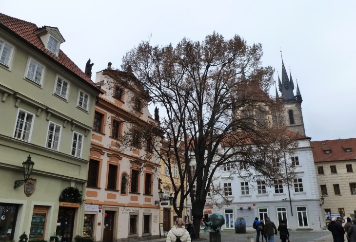 где, кстати, родился и некоторое время жил Карл IV, мы очутимся на небольшой площади, заключенной в плотное ожерелье домов, не менее таинственной, чем возвышающийся над ней Тынский храм.