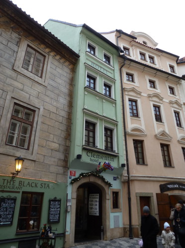 Стена к стене с чернозвездным домом находится уникальное историческое здание, в котором сейчас расположен отель «Clementin Old Town».