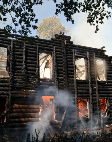 На освободившемся месте в лучшем случае появляется имитация исчезнувшего в огне памятника архитектуры – кирпичный домик, обшитый деревом или изображающим его материалом, внешне похожий на утраченный оригинал.