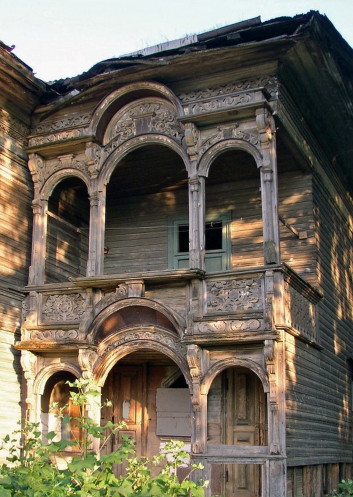 Можно сказать, что традиции всемирно известного вологодского кружева воплотились и в деревянных украшениях жилья вологжан. Традиционный, опоясывающий дом, резной фриз, и правда, напоминает ажурную ленту мерного кружева (о вологодском кружеве можно почитать в моей заметке: http://www.rutraveller.ru/note?id=2406).