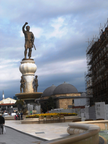 Но то что нас несомненно поразило, так это обилие памятников на главной площади Македония. Здесь встречаются статуи любых форм, поз и личностей: от памятника нищему