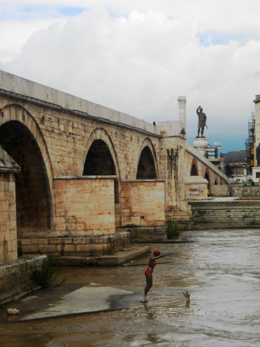 Под каменным мостом можно встретить скульптуру ныряльщицы в красном купальнике. А помимо Каменного, через реку Вардар протянуты еще два моста. С одной стороны - Золотой мост, а с другой - мост искусств с многочисленными памятниками вдоль него.