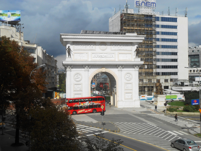 Первым помпезным архитектурным строением, с которого началось наше знакомство с городом Скопье, была триумфальная арка Porta Macedonia.