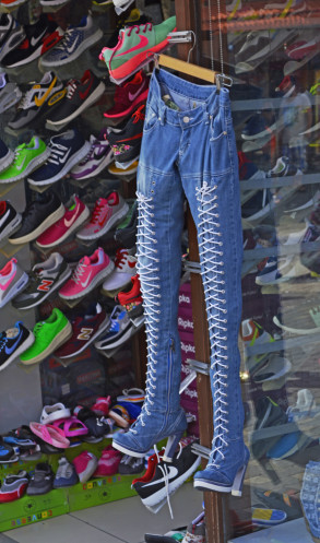 И дальше гид повела нас всех, через многочисленные лавки, к храму Апполона. А в лавке с обувью продают вот такие джинсосапоги)