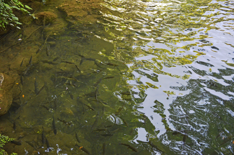 Полюбовавшись на водопад,можно прогуляться вдоль речки.Там проложена тропа,переходящая с берега на берег по многочисленным мостикам.