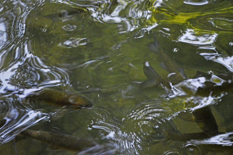 Ну вот и обедать пора). В автобусе гид записала кто желает курочку,а кто рыбку.Мы пожелали форель на гриле.Располагаемся в ресторанчике на берегу речки.