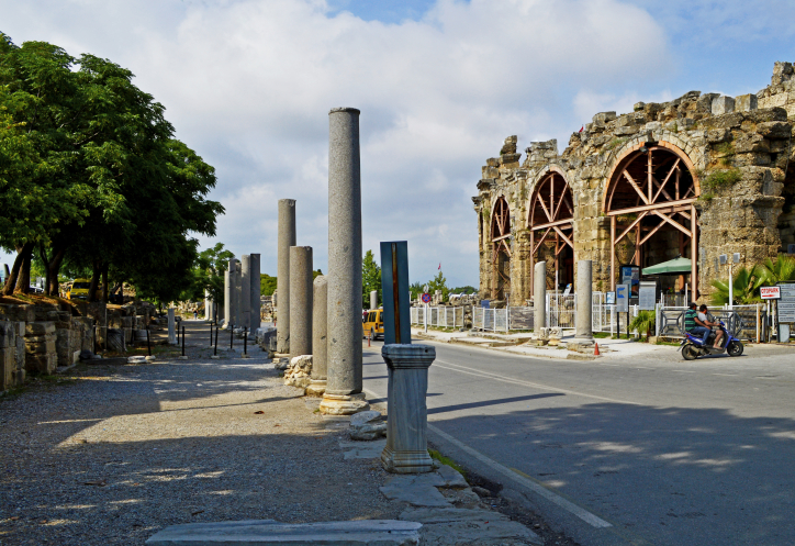 Последним пунктом посещения был древний город Сиде.Высадили нас на колонной улице.