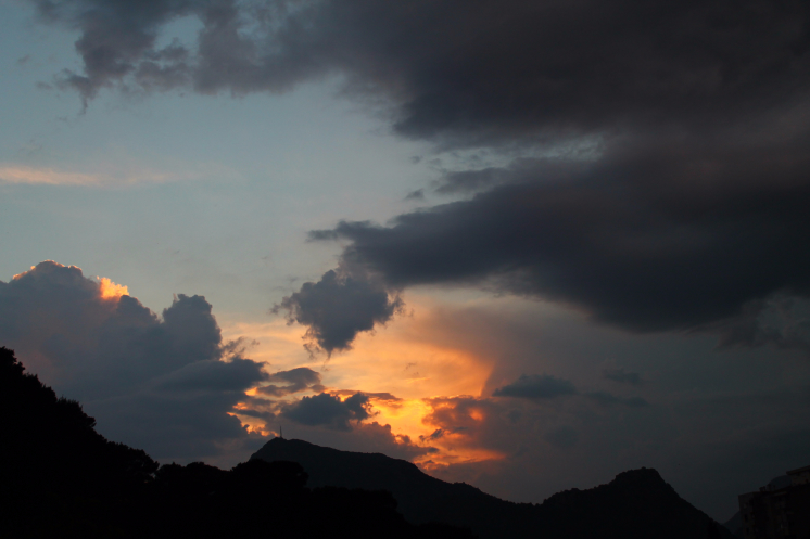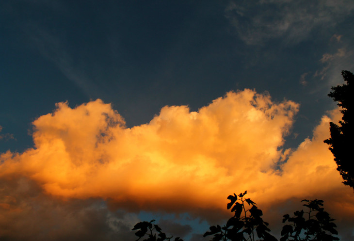 И, видимо в качестве утешения и компенсации за непросмотренный закат с мыса, в тот вечер небо сделало мне подарок... Подняв в какой-то момент голову вверх (мы сидели в небольшом дворике, окруженном домами и кипарисами), я увидела над собой необычайной красоты облако! День удался))