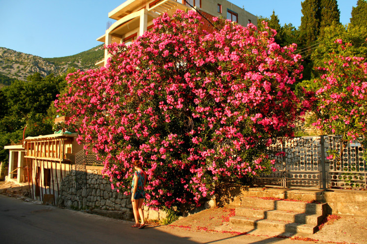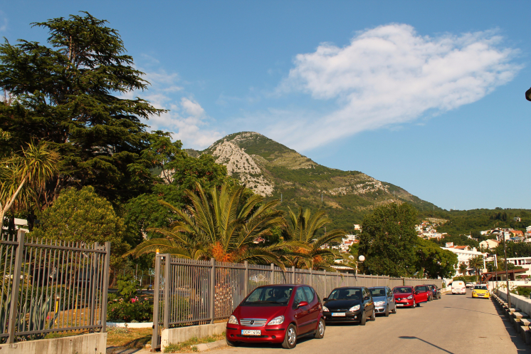 Но мы не на машине, да и гулять пешком в Сутоморе в начале июня - одно сплошное удовольствие, поэтому мы идем мимо холма Голо Брдо до набережной, потом по пустынной несезонной набережной Сутоморе, любуясь на нависающие над поселком горы...