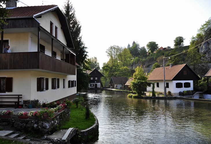 Итак, в обед 17 сентября 2012г я стояла в маленьком аэропорту Загреба в огромной очереди на паспортный контроль.. Простояла там примерно час, но сам контроль прошла быстро: открыли паспорт-поставили штамп и всё... Никаких вопрос о цели приезда, никаких броней отелей, обратного билета у меня не попросили... Друзья меня уже ждут, быстро грузимся в машину и мчимся в сторону Плитвице. Рядом с нацпарком мы решили найти жилье на одну ночь, чтоб на следующее утро погулять по парку... По пути заехали в деревушку Растоке. Очень симпатичное и приятное место для прогулок.